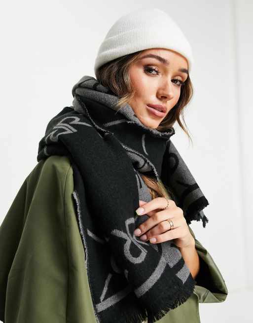River Island oversized monogram print scarf in black Very well made.