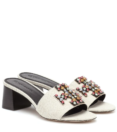Tory Burch Women s Ines Embellished Linen Leather Mules In Very well made.