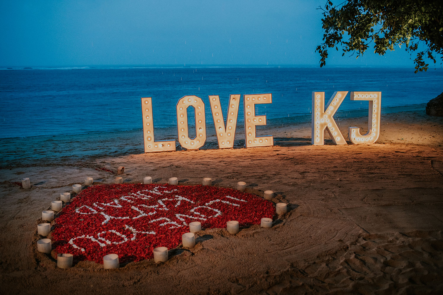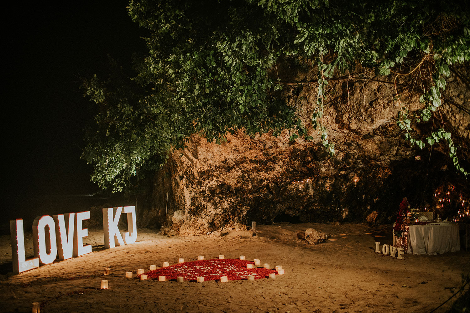 Proposal photo shoot of Ahmed and Katty, a couple from Dubai. Taken on the surprise romantic dinner inside a beach cave at Samabe Resort, Nusa Dua.