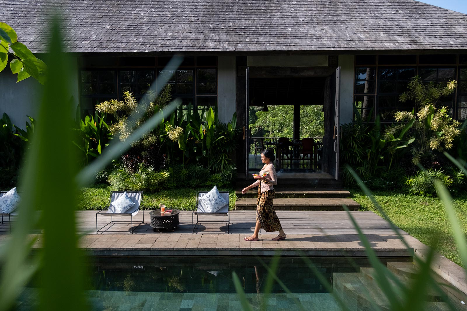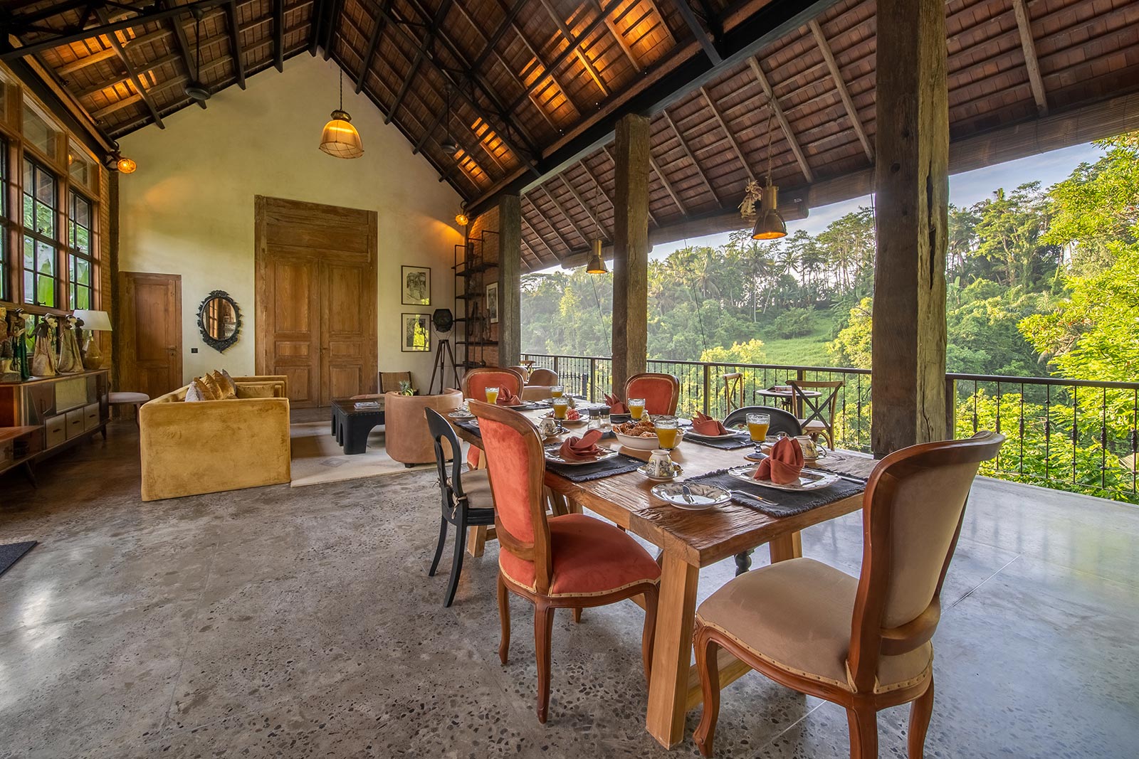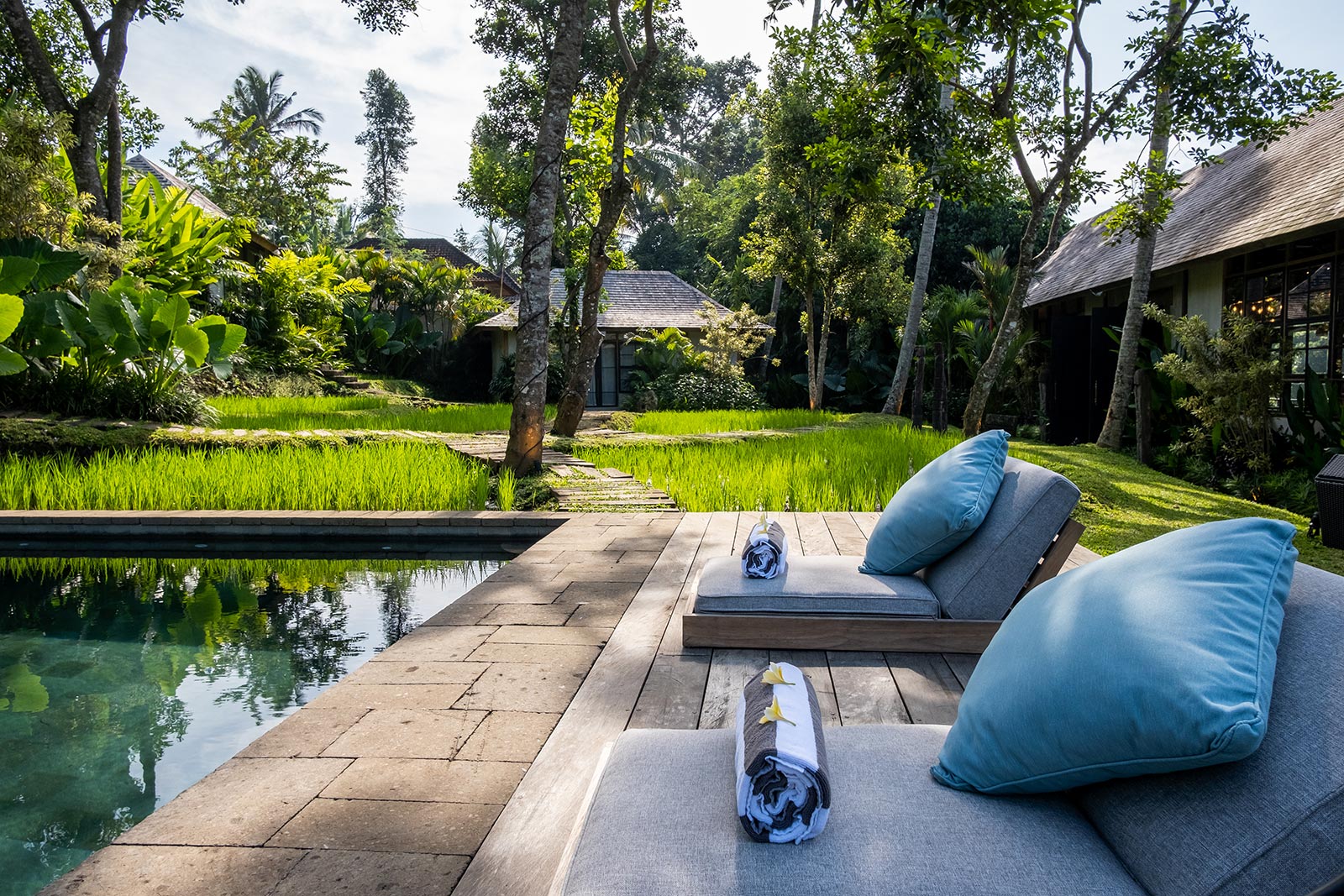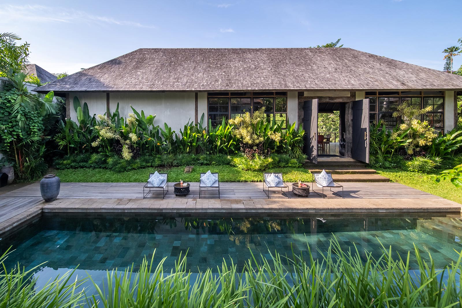 With a classic colonial style interior design, this estate consists of 2 villas, namely 5 bedrooms and 4 bedrooms. Both have the same cool interior design, views of the valley with a clean river, a soothing grove of trees, a private pool, and the most unique is ricefield inside the property. Hm… good taste. Here are some photos that we shot: