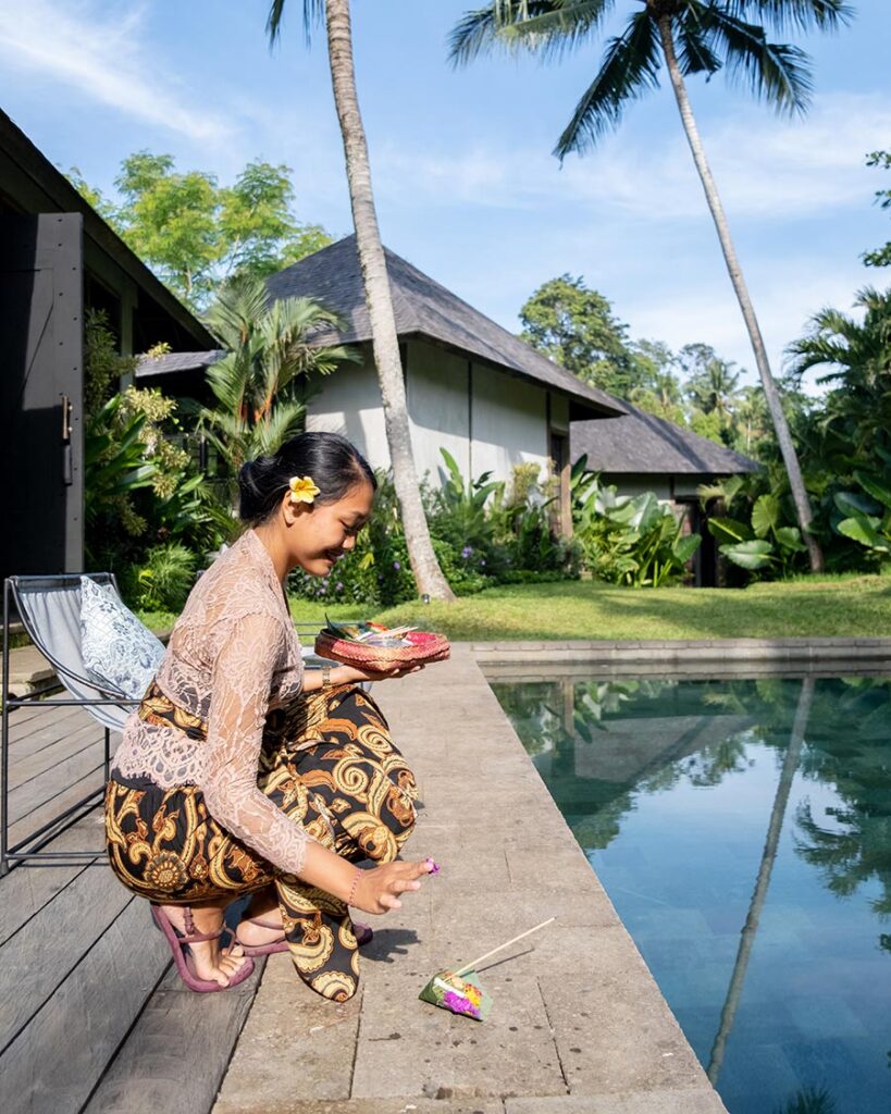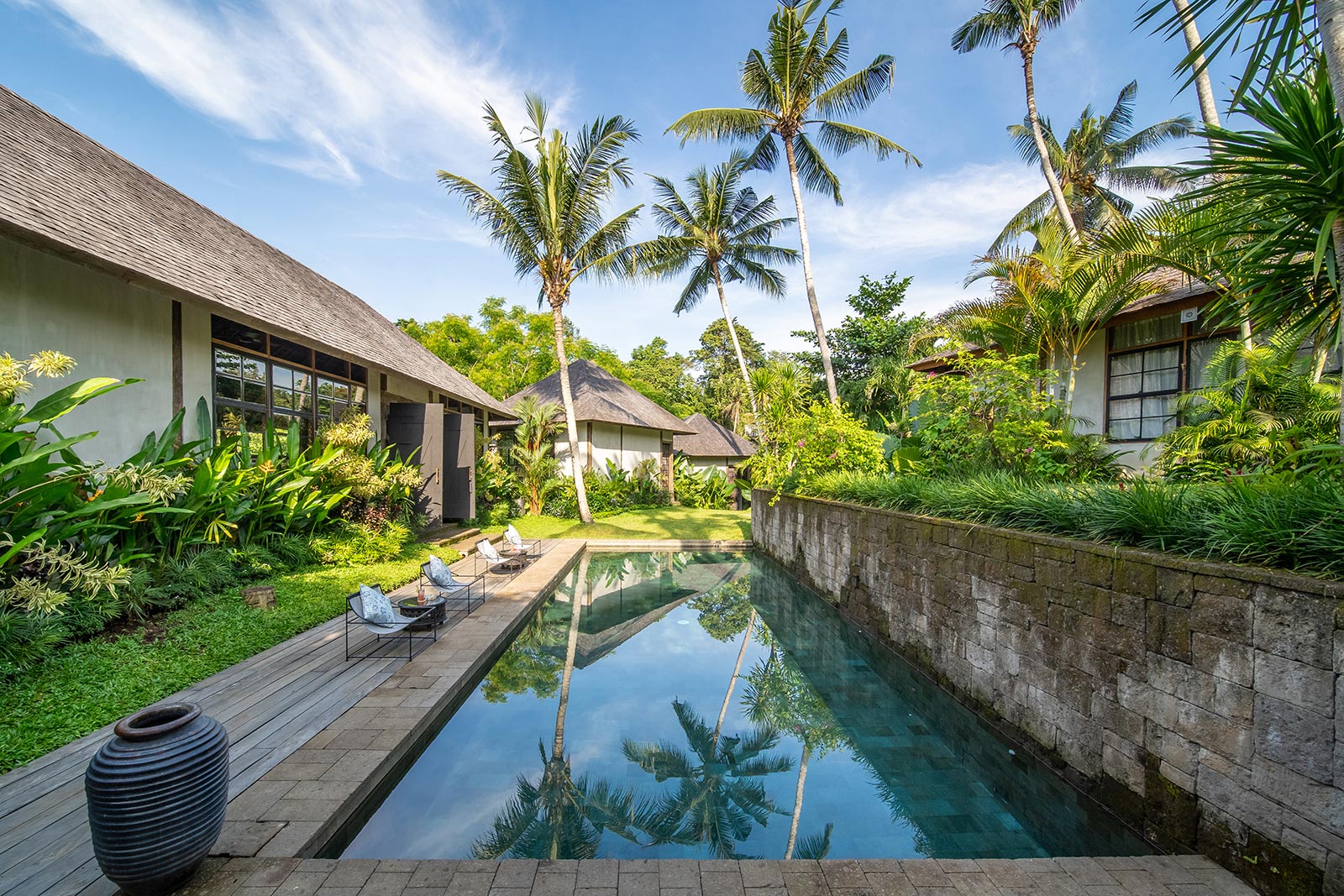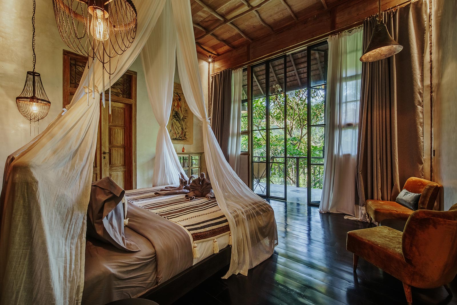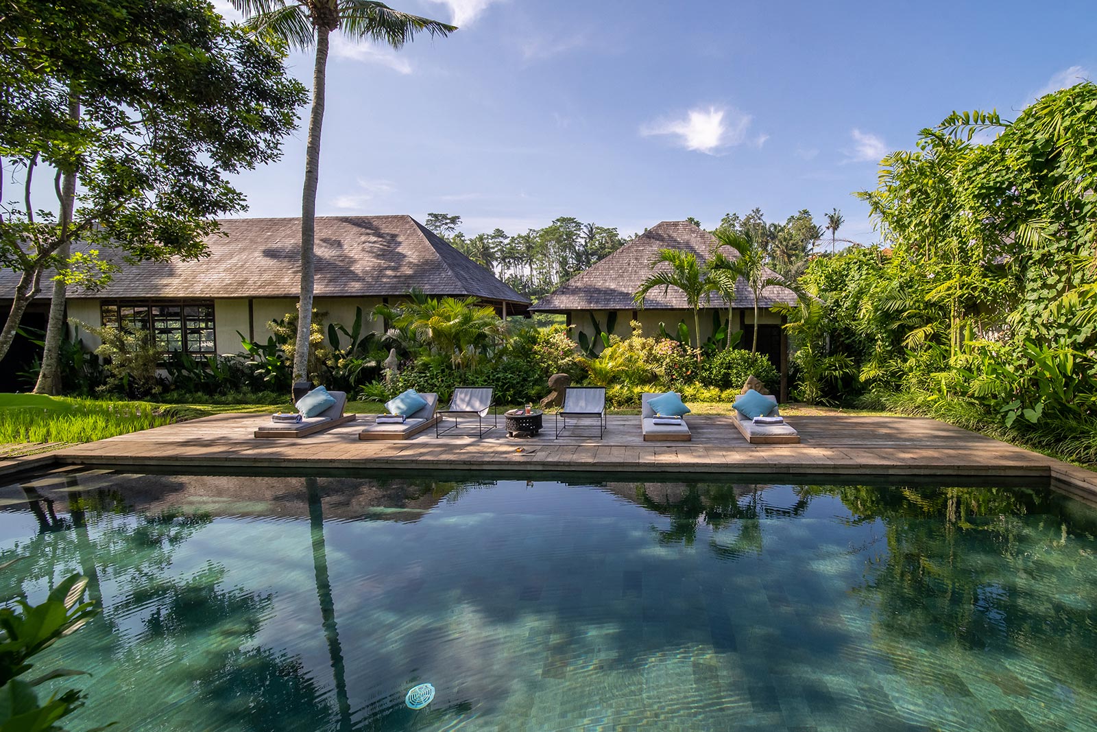 With a classic colonial style interior design, this estate consists of 2 villas, namely 5 bedrooms and 4 bedrooms. Both have the same cool interior design, views of the valley with a clean river, a soothing grove of trees, a private pool, and the most unique is ricefield inside the property. Hm… good taste. Here are some photos that we shot: