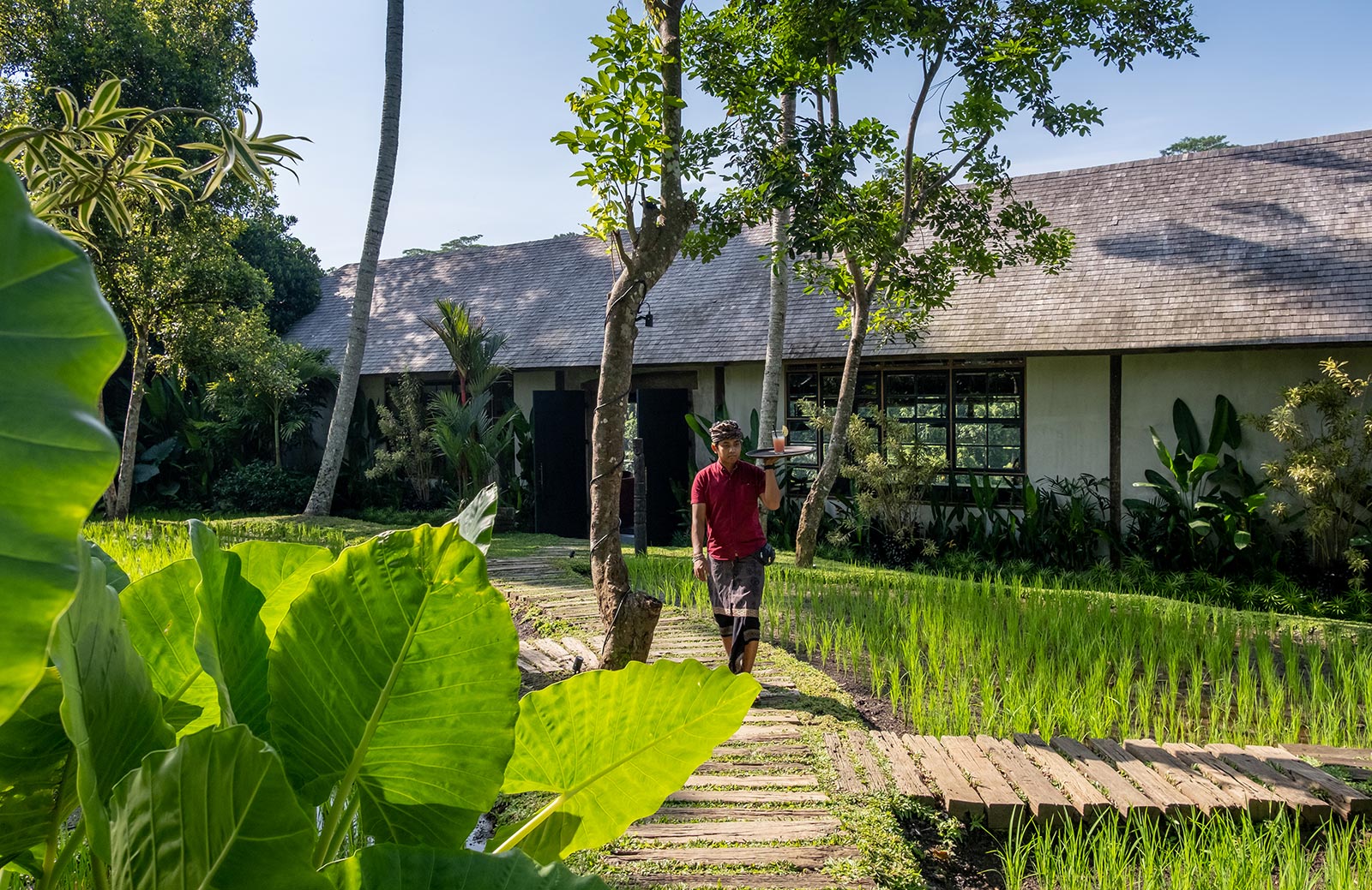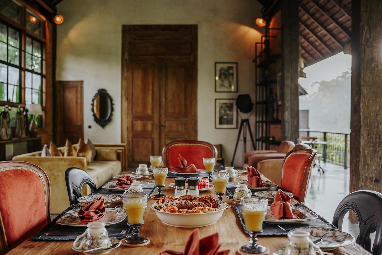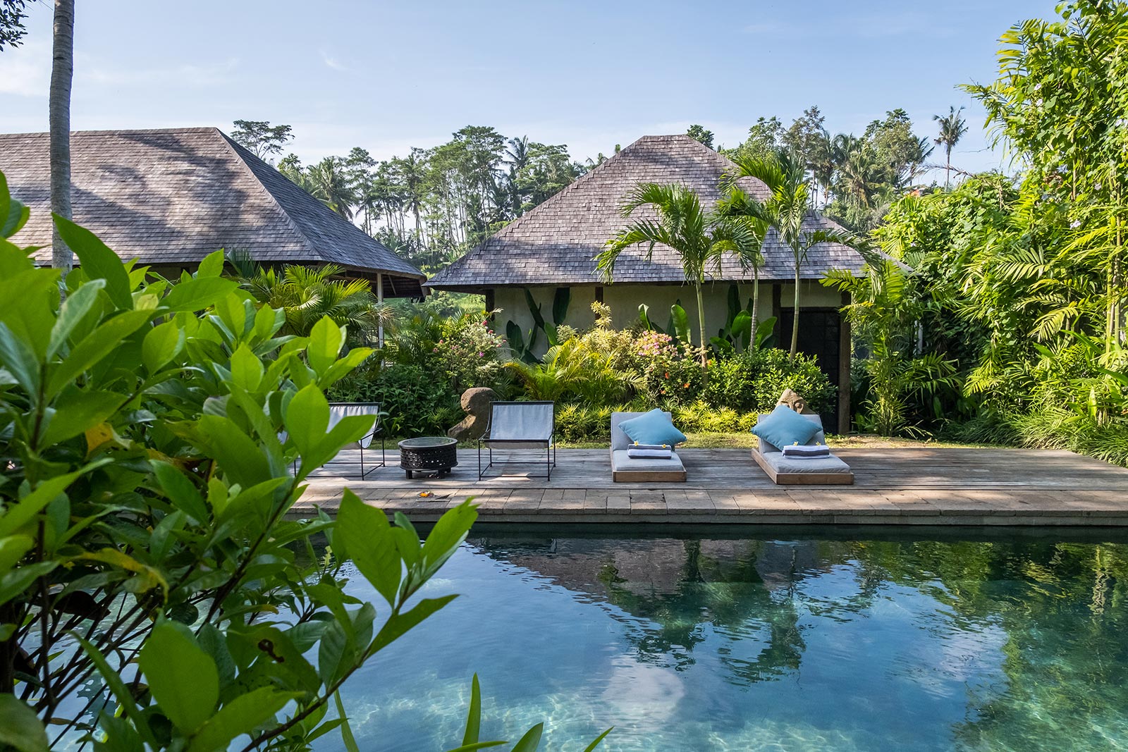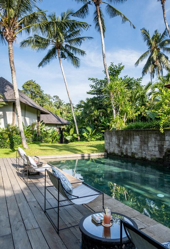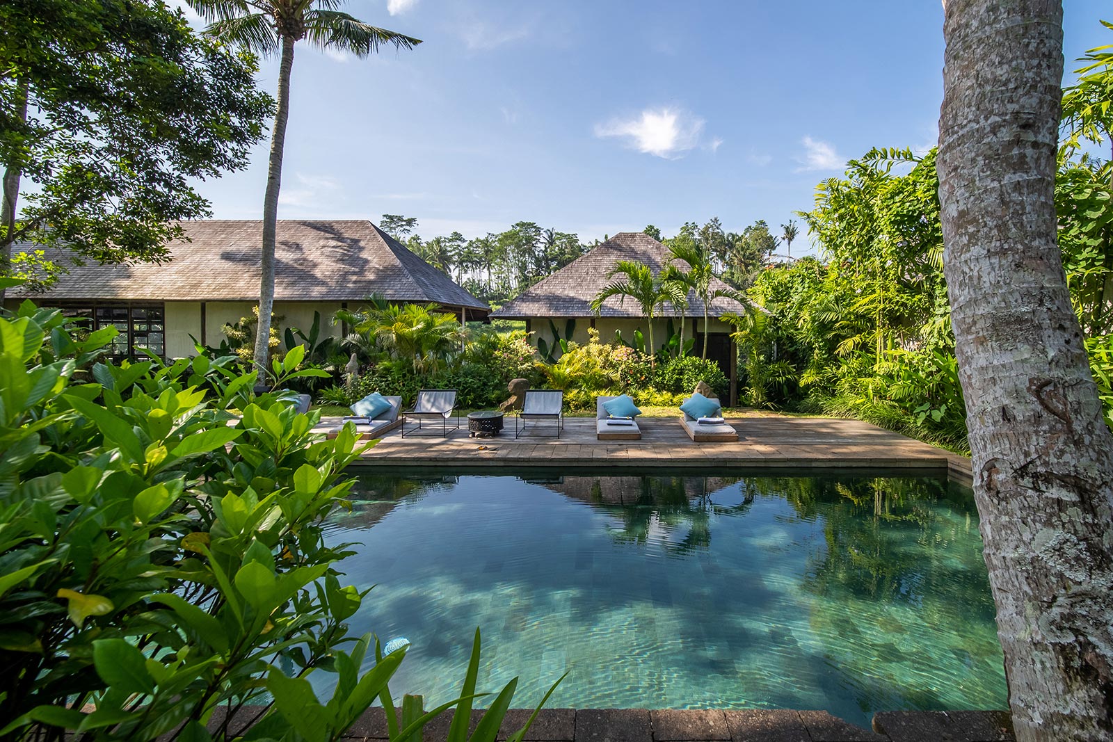 With a classic colonial style interior design, this estate consists of 2 villas, namely 5 bedrooms and 4 bedrooms. Both have the same cool interior design, views of the valley with a clean river, a soothing grove of trees, a private pool, and the most unique is ricefield inside the property. Hm… good taste. Here are some photos that we shot: