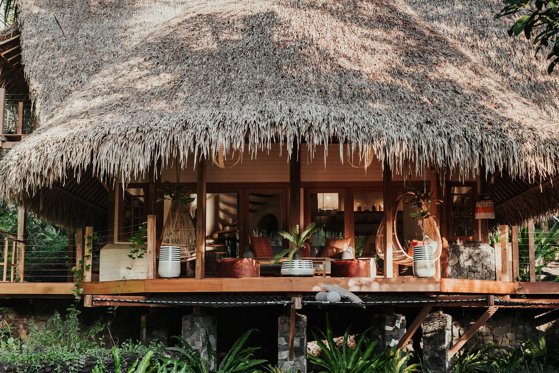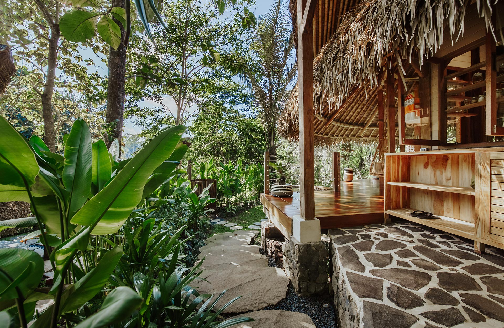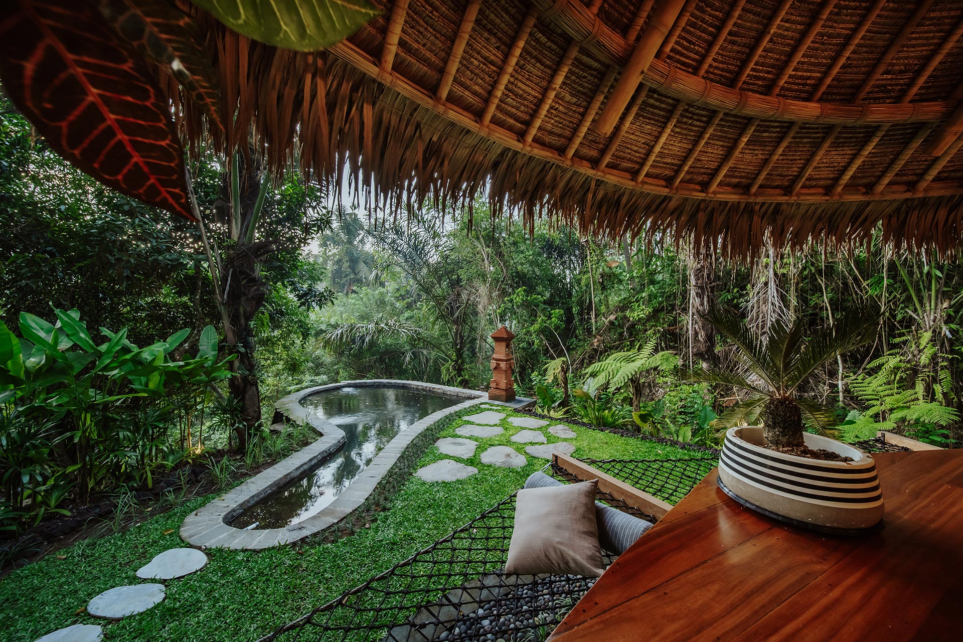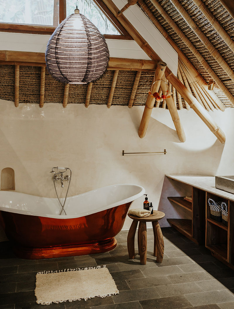 2nd Villa – Eco village is one example of beautiful eco friendly villas complex located in rural area called Sibang, nearby Kul Kul Farm and Bali Green School. The concept is very inspiring, which is more plants than buildings. Large trees which are native to the area still maintained around the villas so that the atmosphere is very cool. Most of the building materials are made of wood and bamboo, the roof made from alang-alang and they have a natural pool concept. Here are some best photos that we shot.