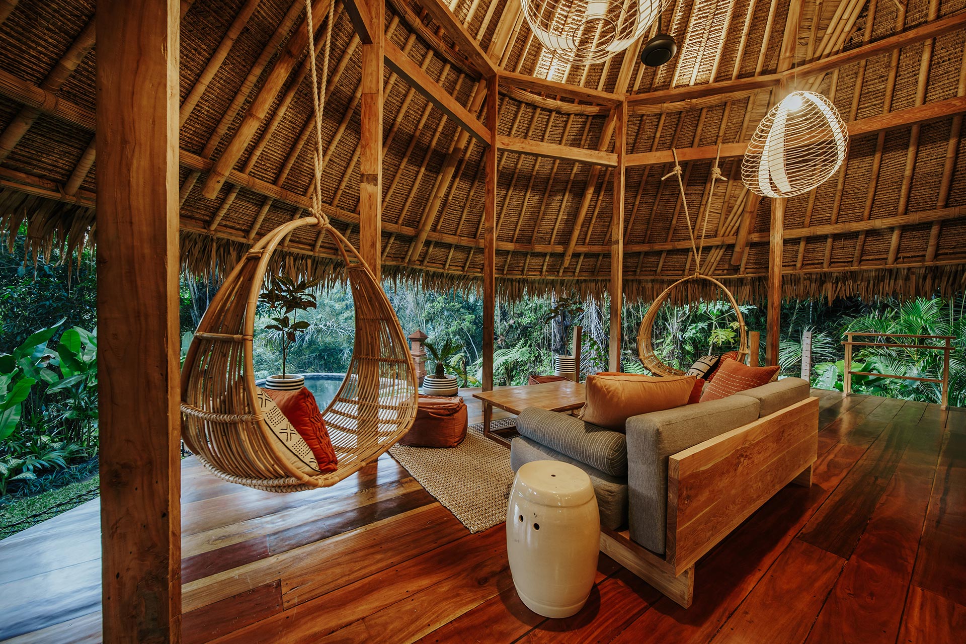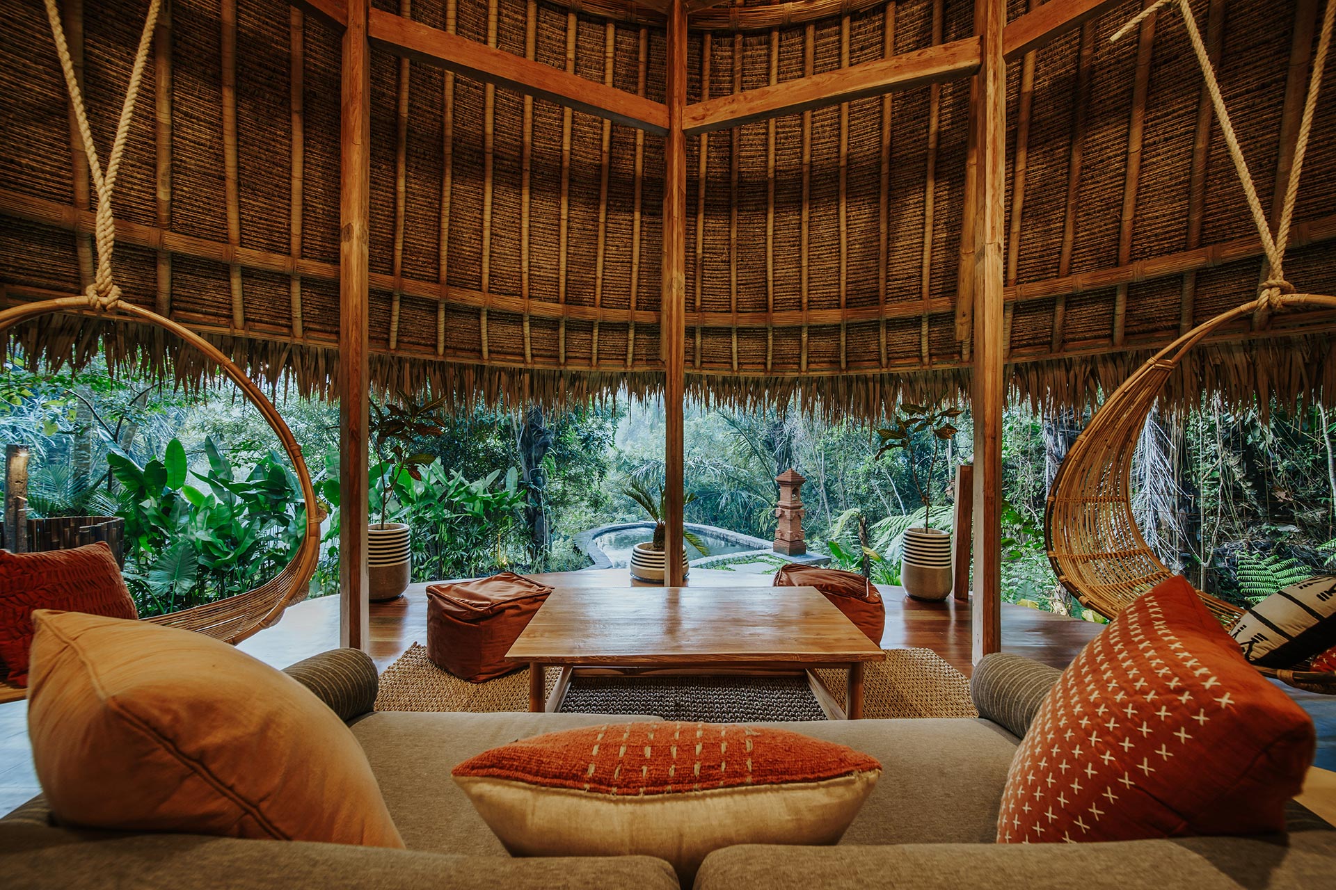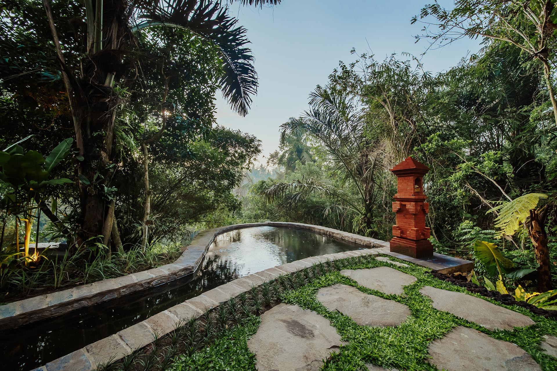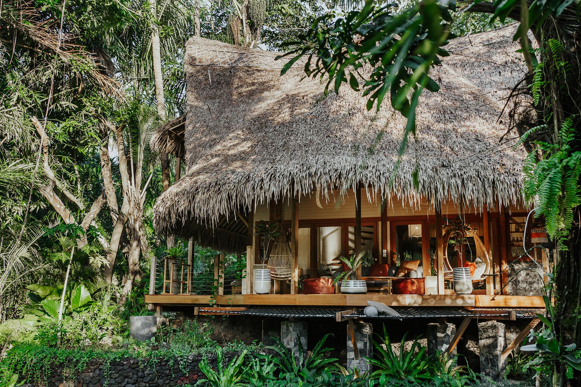 2nd Villa – Eco village is one example of beautiful eco friendly villas complex located in rural area called Sibang, nearby Kul Kul Farm and Bali Green School. The concept is very inspiring, which is more plants than buildings. Large trees which are native to the area still maintained around the villas so that the atmosphere is very cool. Most of the building materials are made of wood and bamboo, the roof made from alang-alang and they have a natural pool concept. Here are some best photos that we shot.