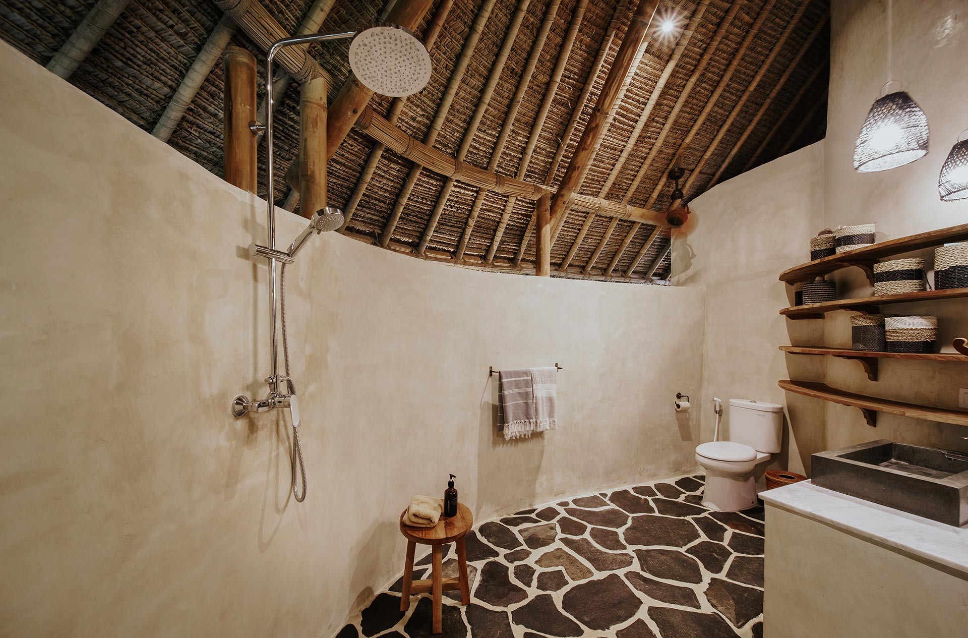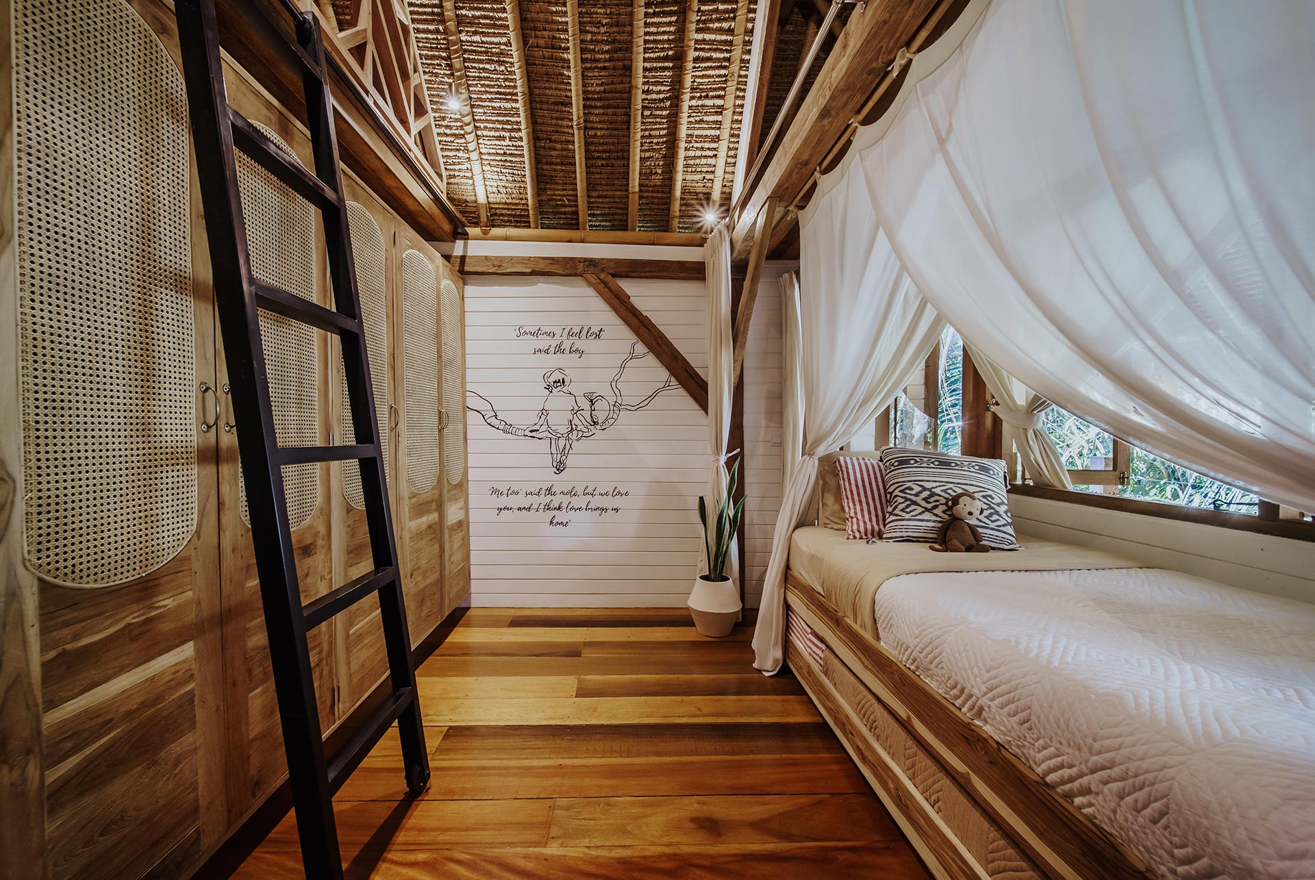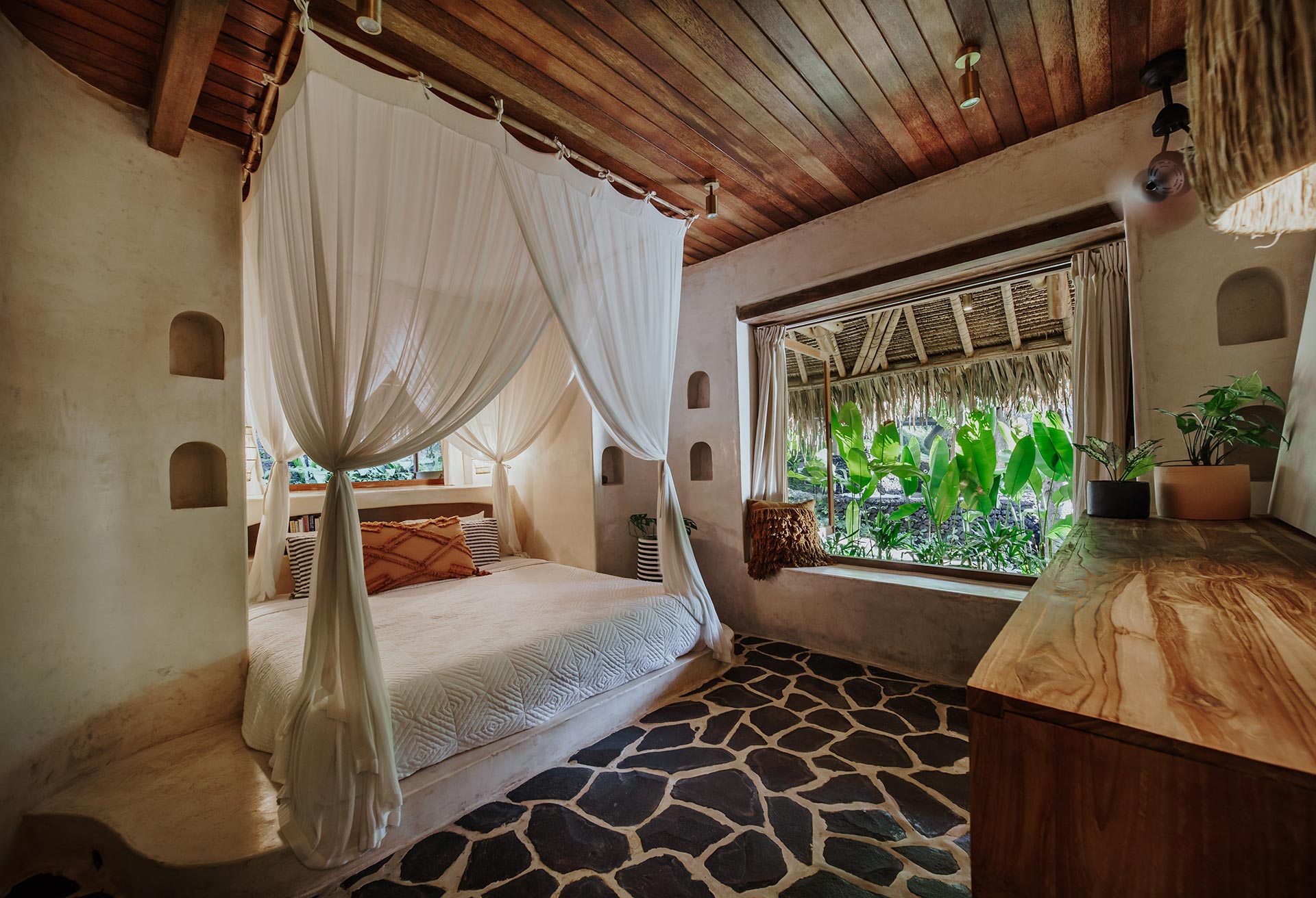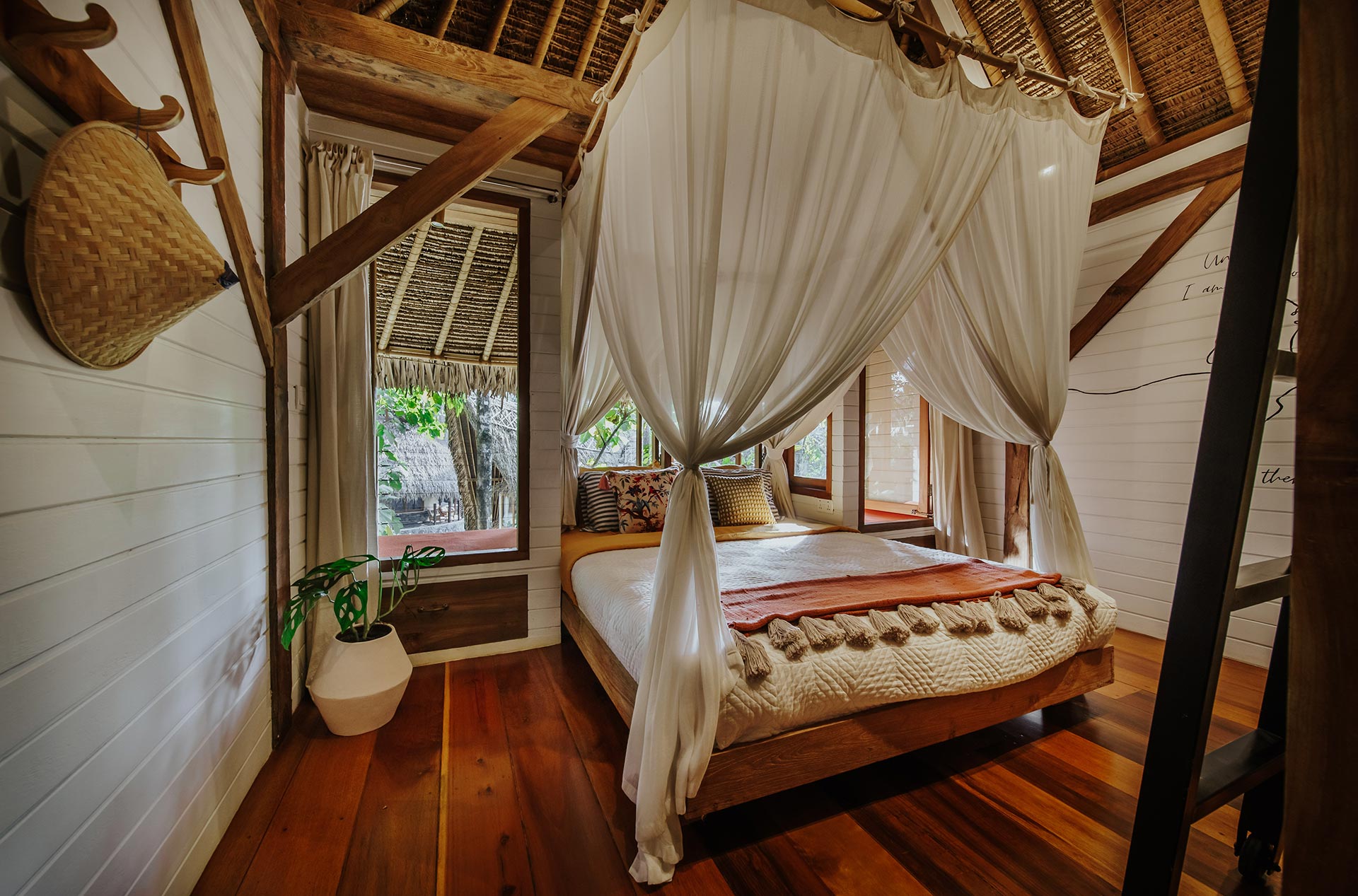2nd Villa – Eco village is one example of beautiful eco friendly villas complex located in rural area called Sibang, nearby Kul Kul Farm and Bali Green School. The concept is very inspiring, which is more plants than buildings. Large trees which are native to the area still maintained around the villas so that the atmosphere is very cool. Most of the building materials are made of wood and bamboo, the roof made from alang-alang and they have a natural pool concept. Here are some best photos that we shot.