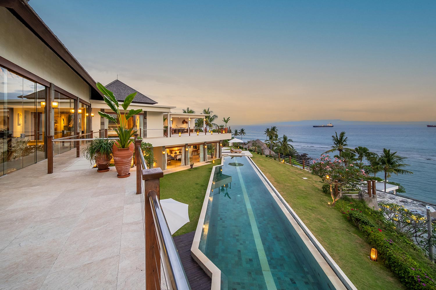 Amazed by the longest pool that lay from end to end, with a modern style beach front villa, Gumamela villa situated in the mid of coconut trees all the way around became one of the most characteristic of the eastern part of Bali, specifically Candidasa. We came several times to get the most beautiful lighting to reveal the best color of this Gumamela Villa and here are some of the results: