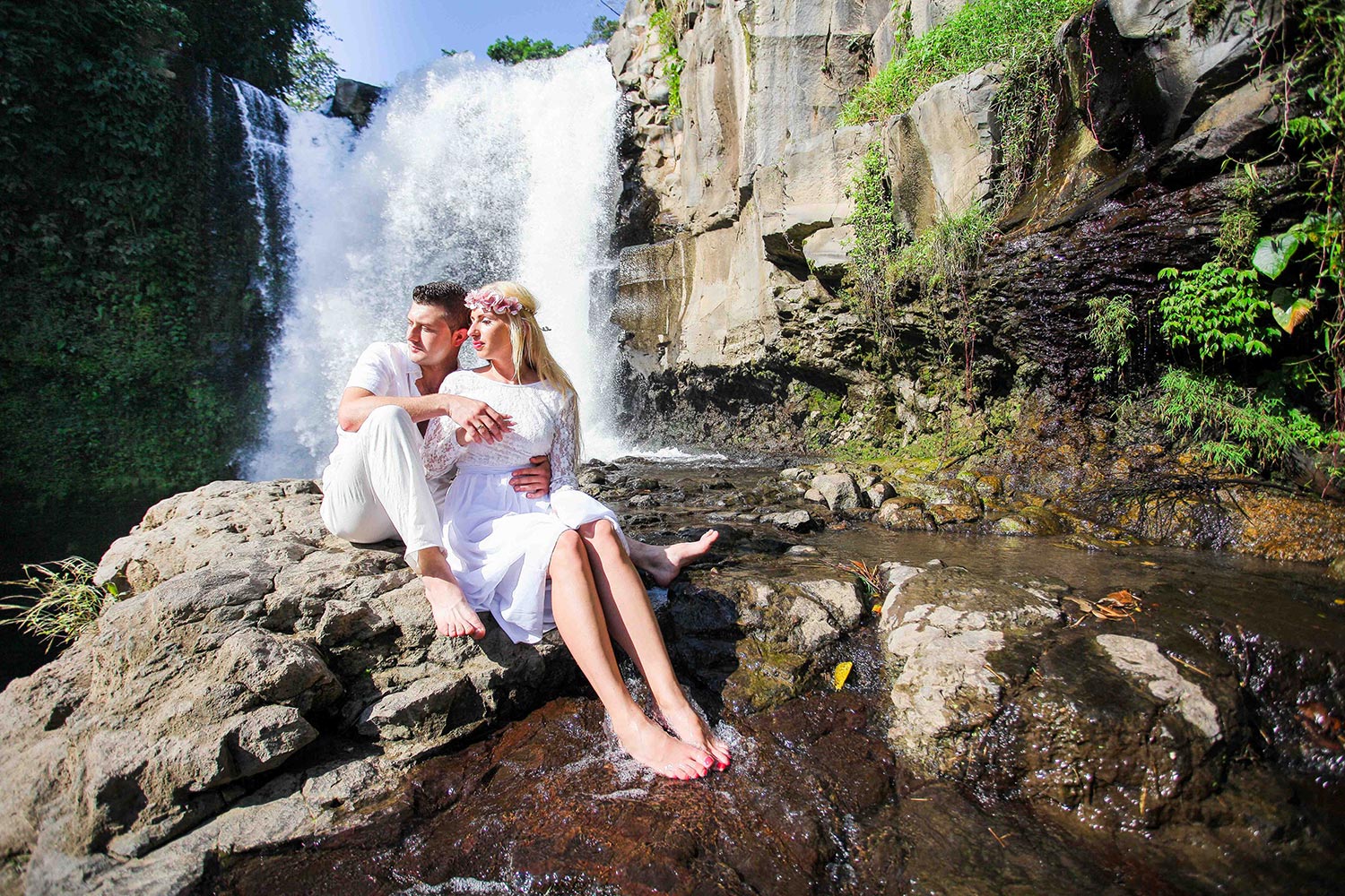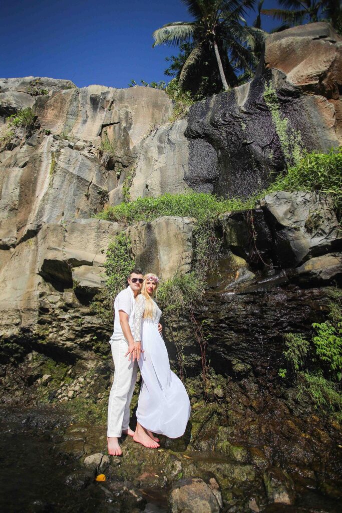 Jeff and Elena is a newly married couple from Spain who are doing tour to several countries including Indonesia to celebrate their honeymoon. Bali is the most preferred place by Elena so they have decided to hire a professional photographer to capture their romantic moments in some of the most beautiful places in Bali. Here are a few photos of them were taken in Tegenungan Waterfall Gianyar and Tegal Wangi beach Jimbaran.