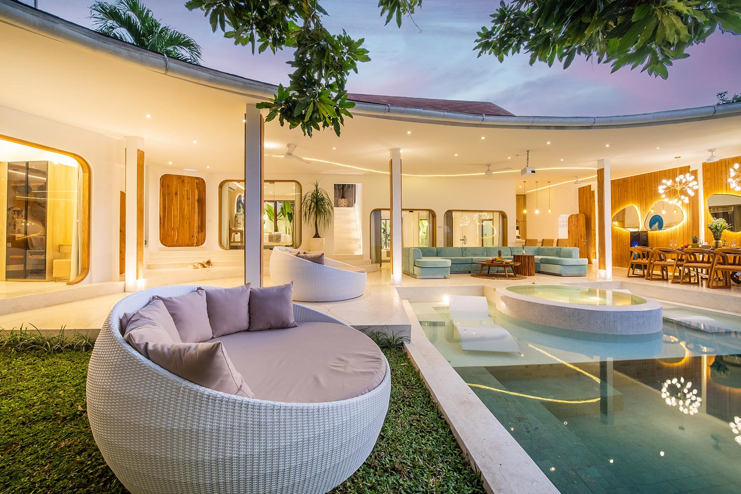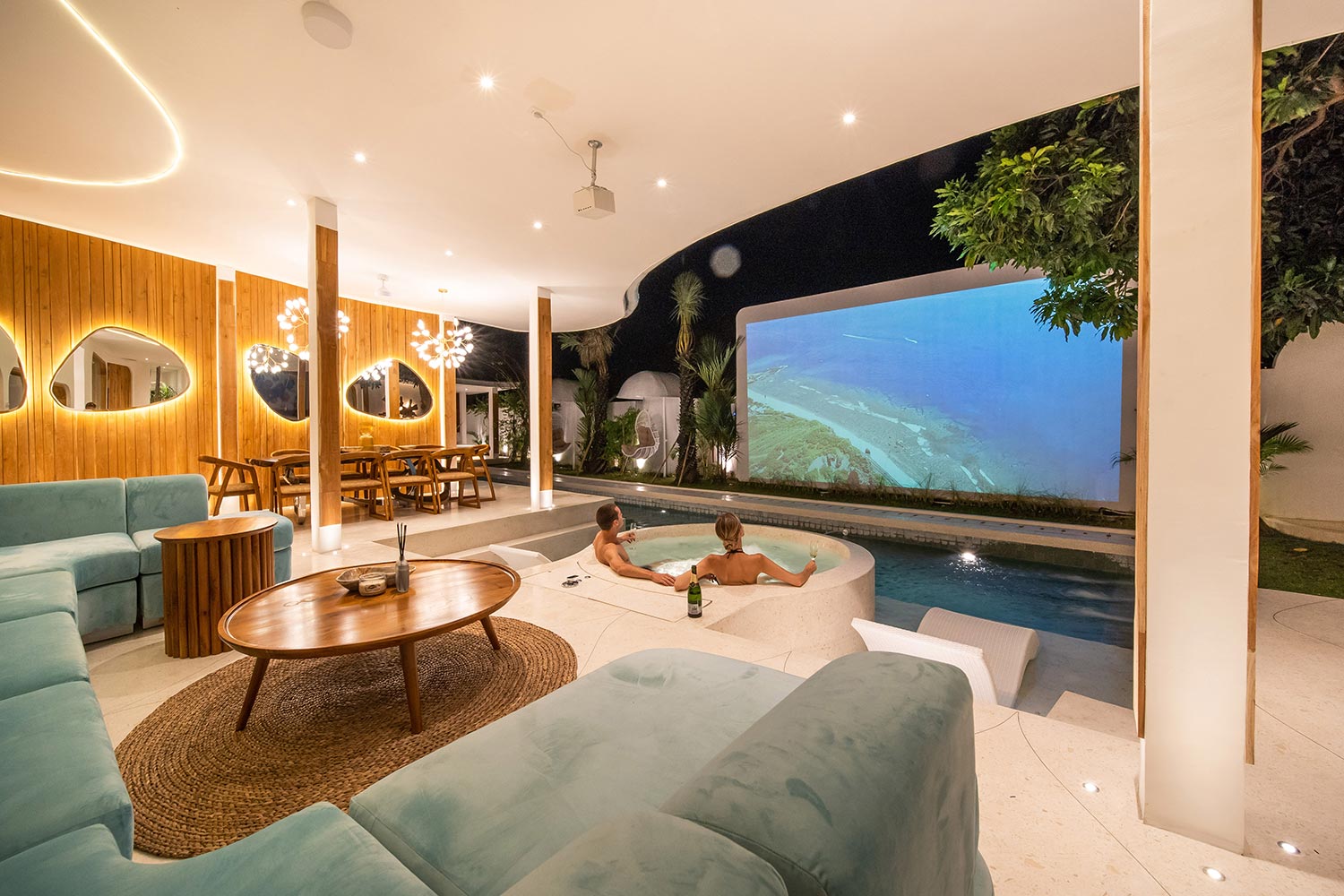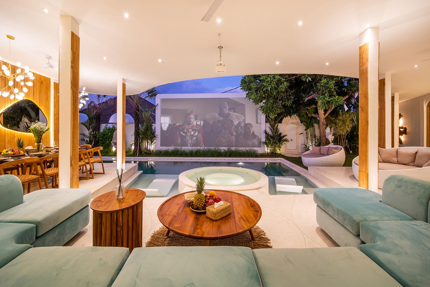 This villa named Magic Mango, located in Umalas. We shoot for day and night time as they have a movie night session in their wall using by projector. A jacuzzi and a glass of drink would made the well night spend. We know that watching movie inside the house or either room are too common nowadays, so why not if we try a different kind of watching style.