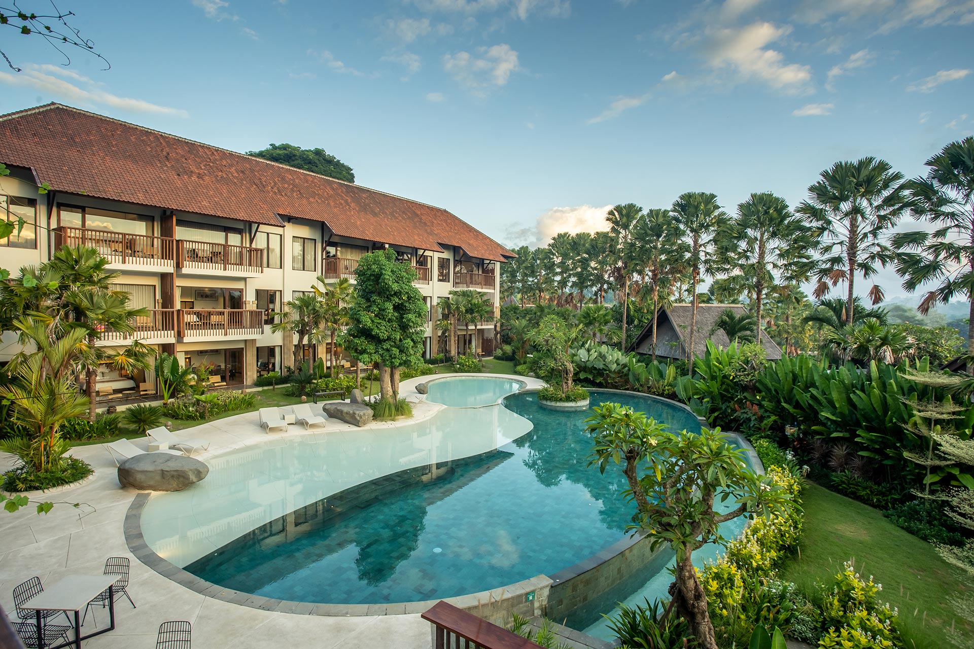 Sanctoo is a resort that owned by Bali Zoo that consist of villas and brand new suites located just beside the zoo itself. The main building has 26 unit suites with pool and a lush Ubud jungle view and the villa has 12 units with private pool and river side. We can hear the roar of the animals like lions, zebras, elephants even from inside the room and it gives the guest very unique real jungle atmosphere. Here are some best photos that we took: