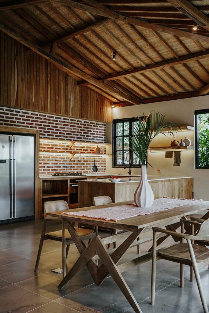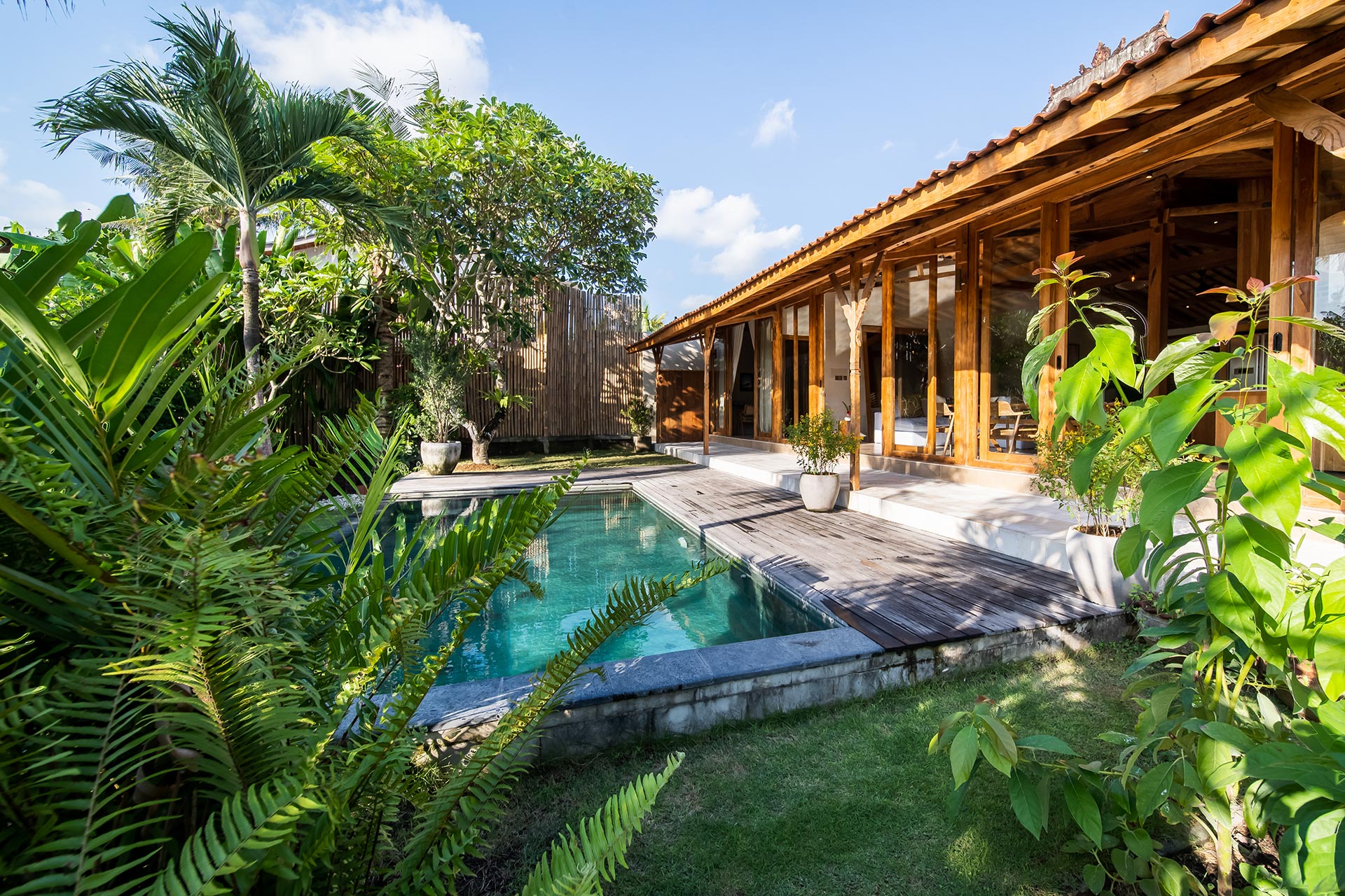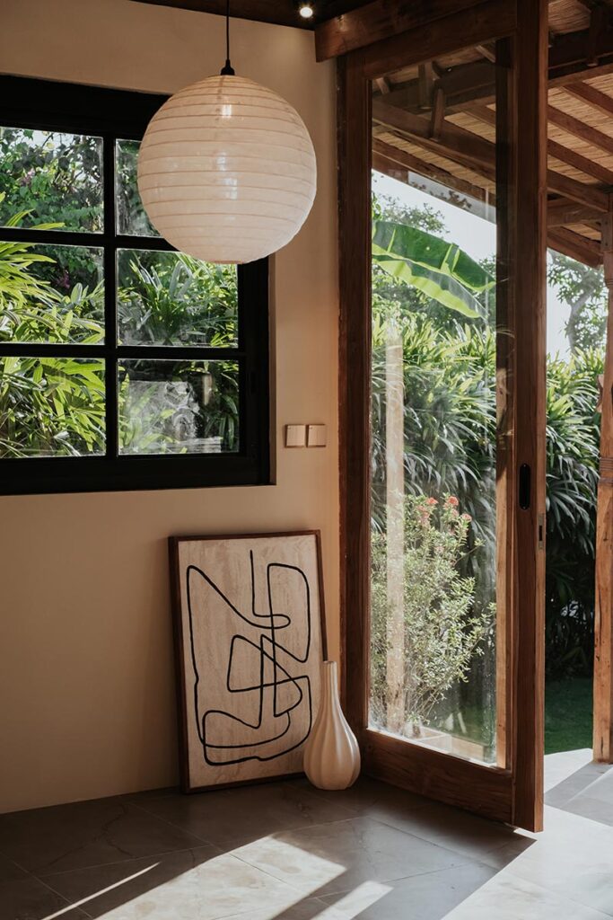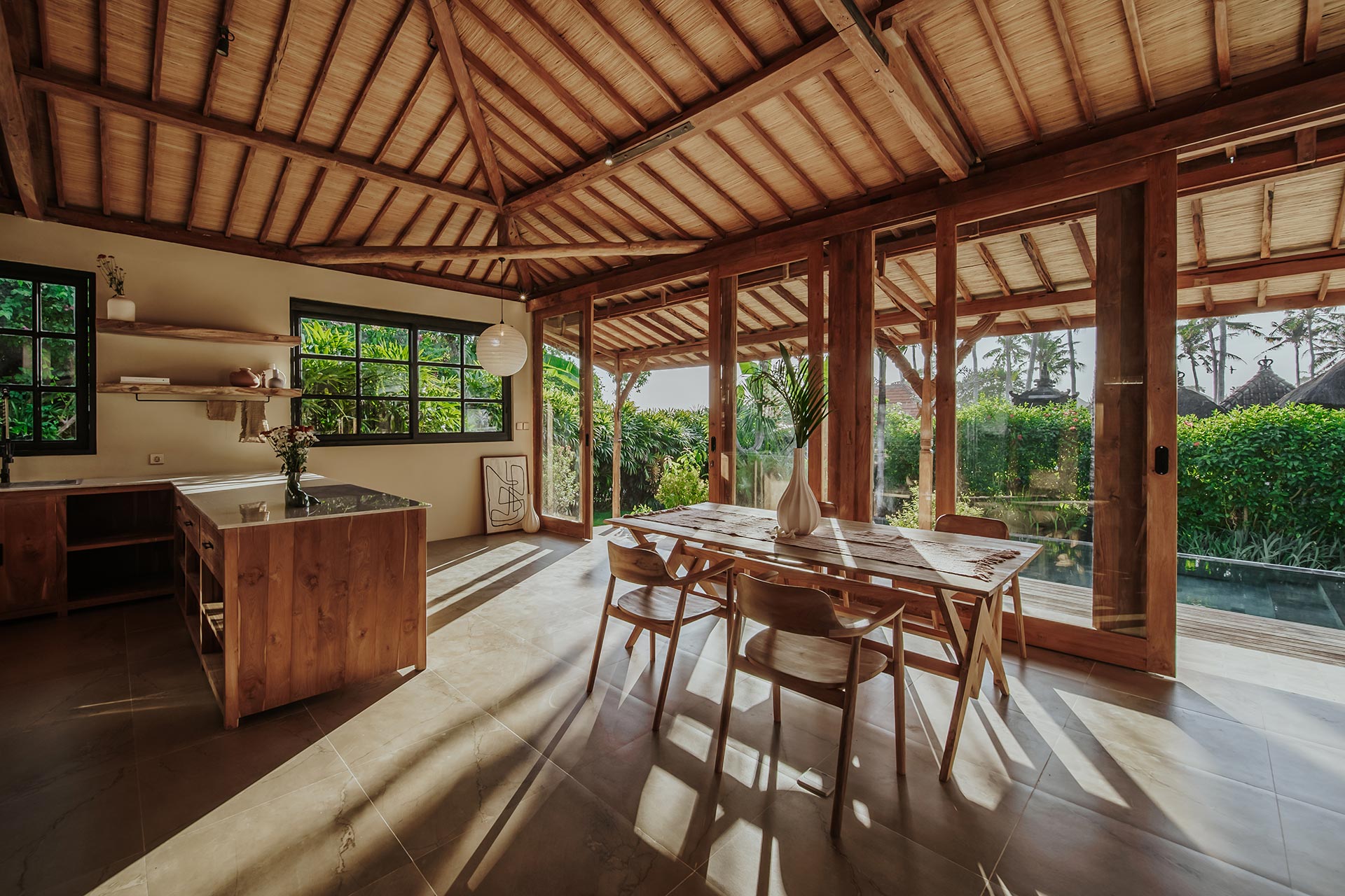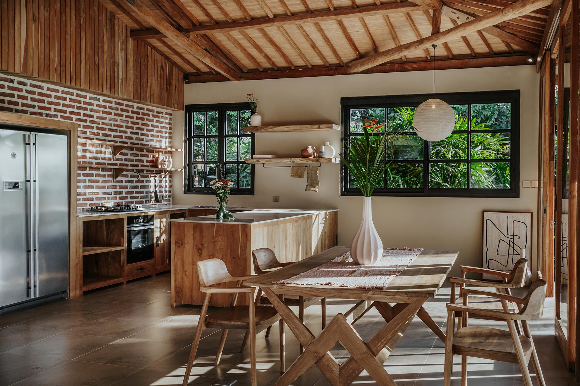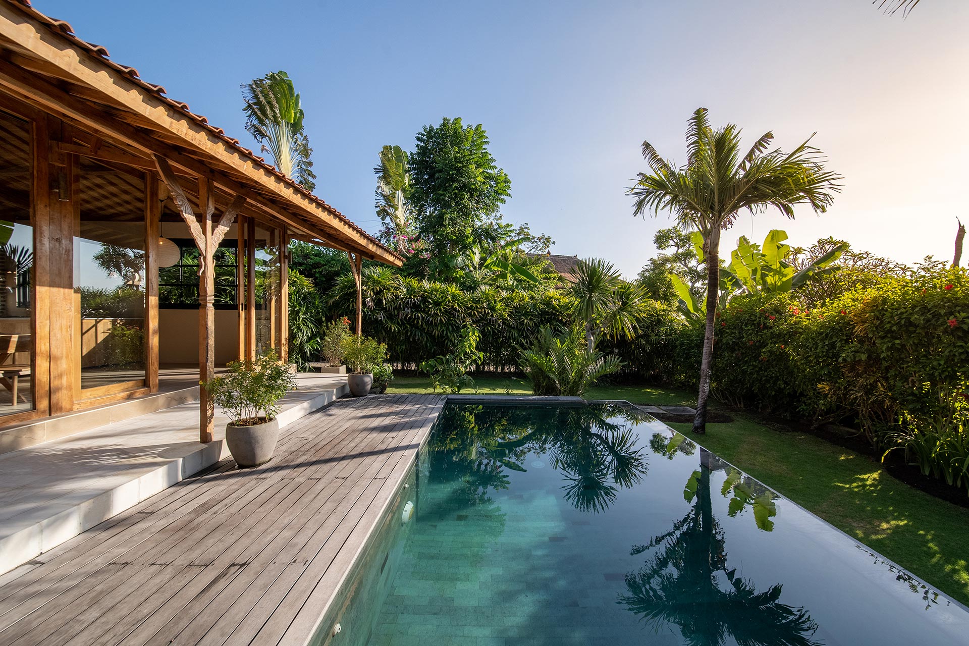 Unlike the previous houses with rustic designs, this one has a more mature design. A simple Joglo house with calmer furniture and modern classic style. In front of it there is a swimming pool with a wooden deck and a garden with a view of the neighbor’s beautiful Balinese temple. Here are some best photos: