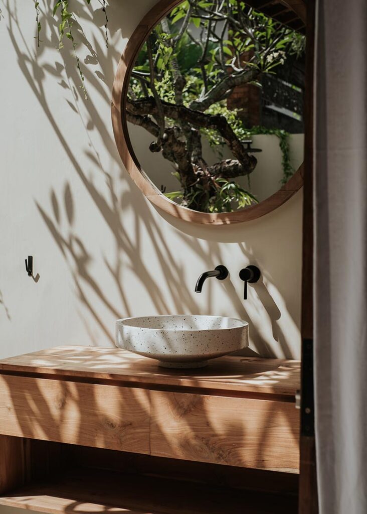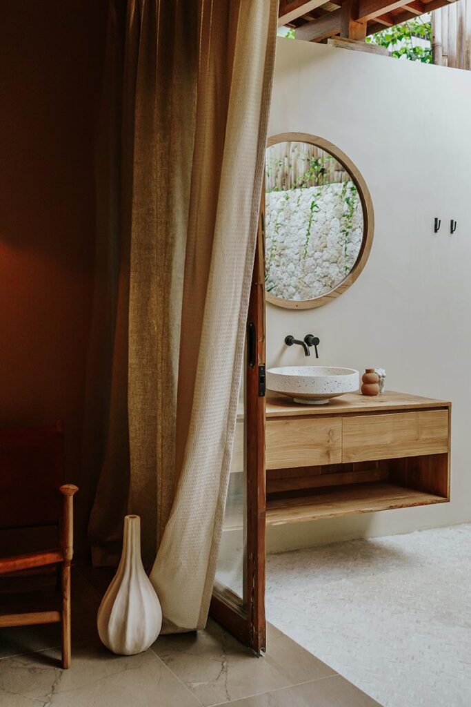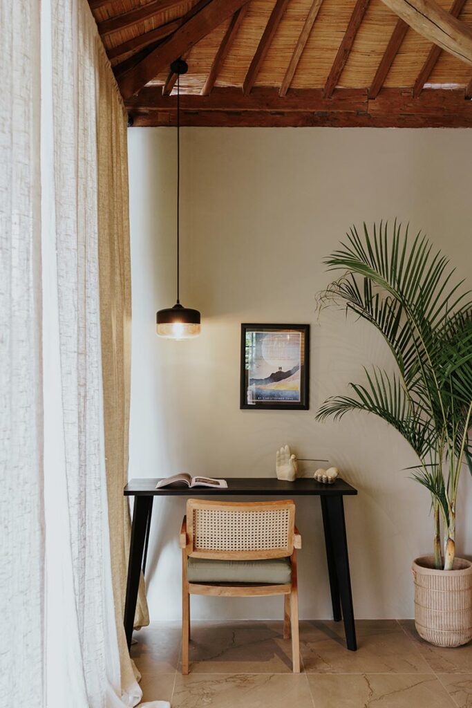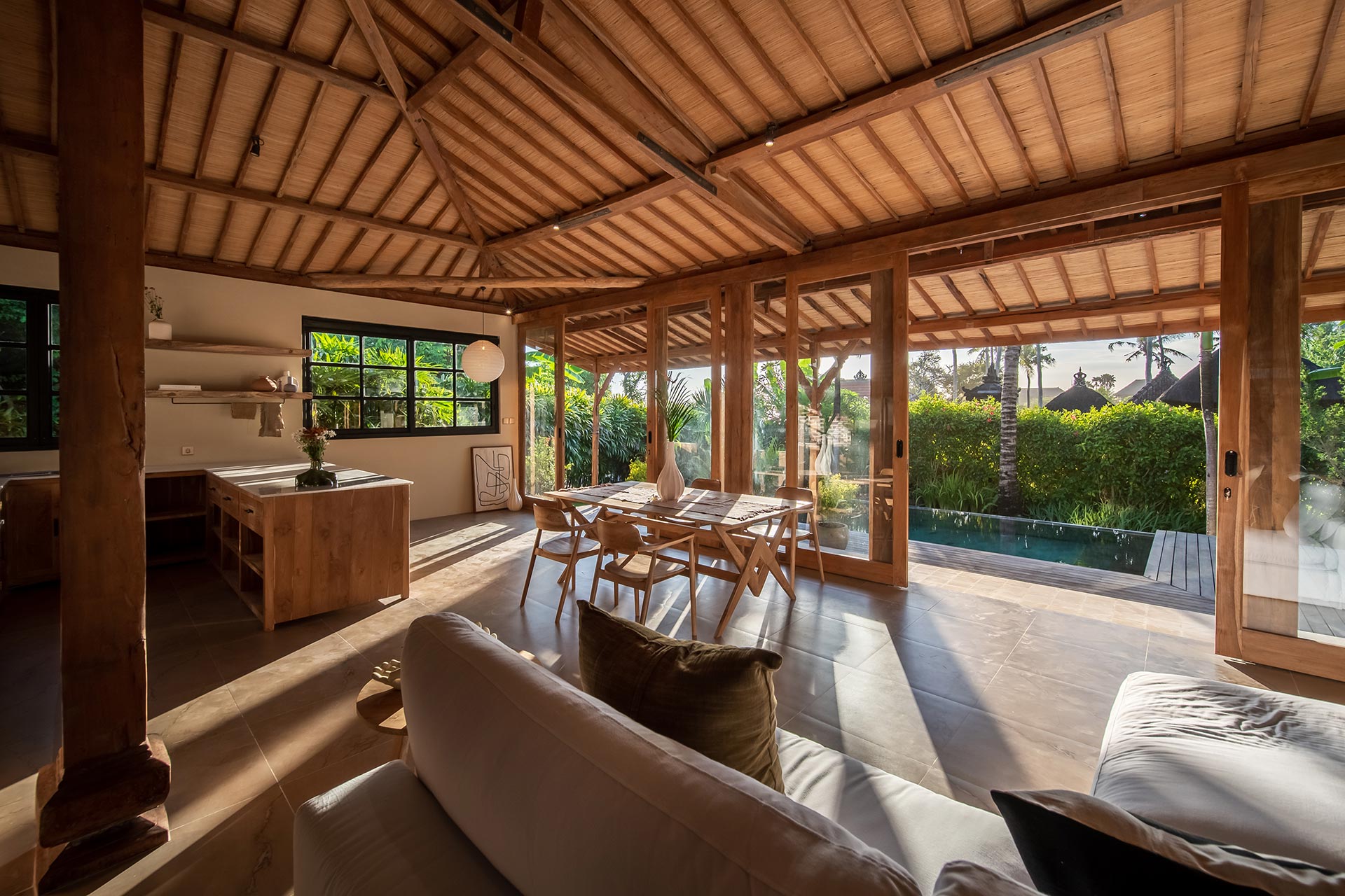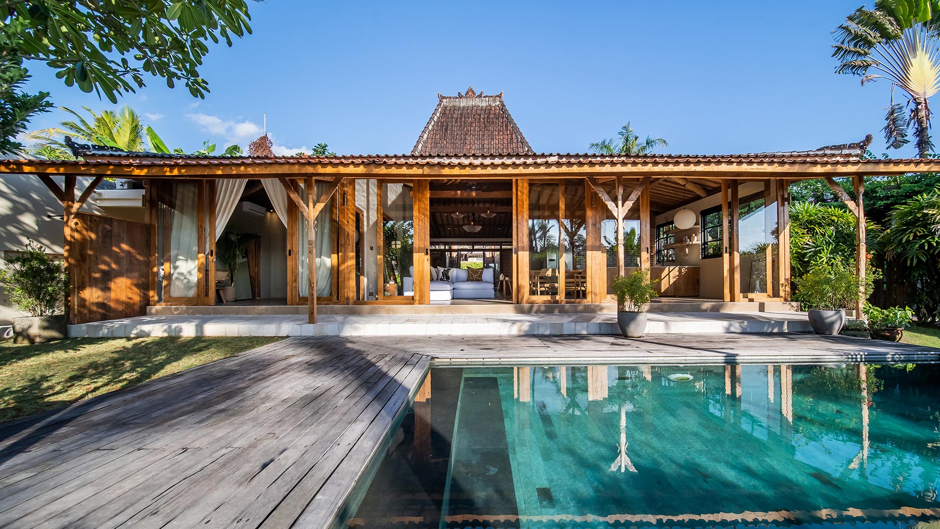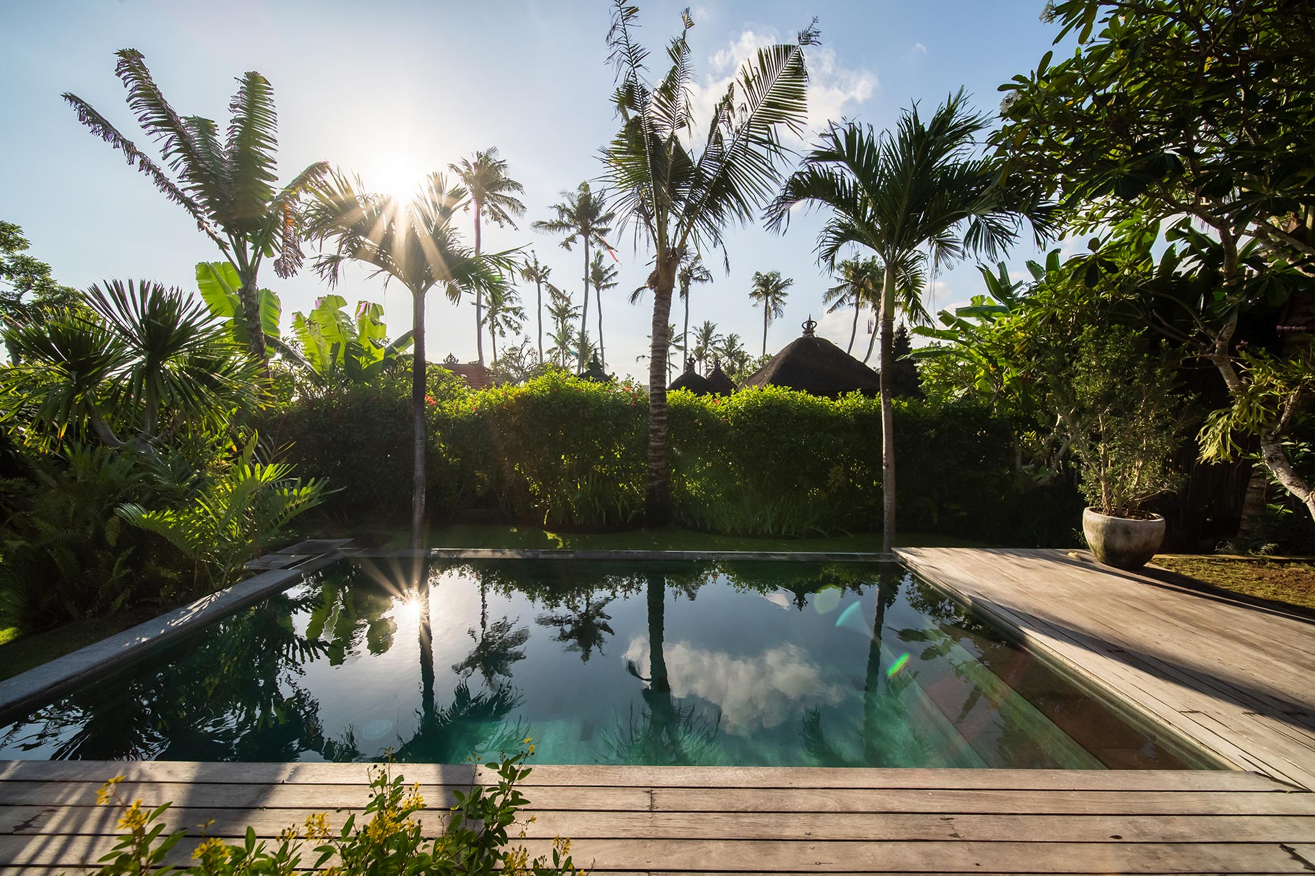 Unlike the previous houses with rustic designs, this one has a more mature design. A simple Joglo house with calmer furniture and modern classic style. In front of it there is a swimming pool with a wooden deck and a garden with a view of the neighbor’s beautiful Balinese temple. Here are some best photos:
